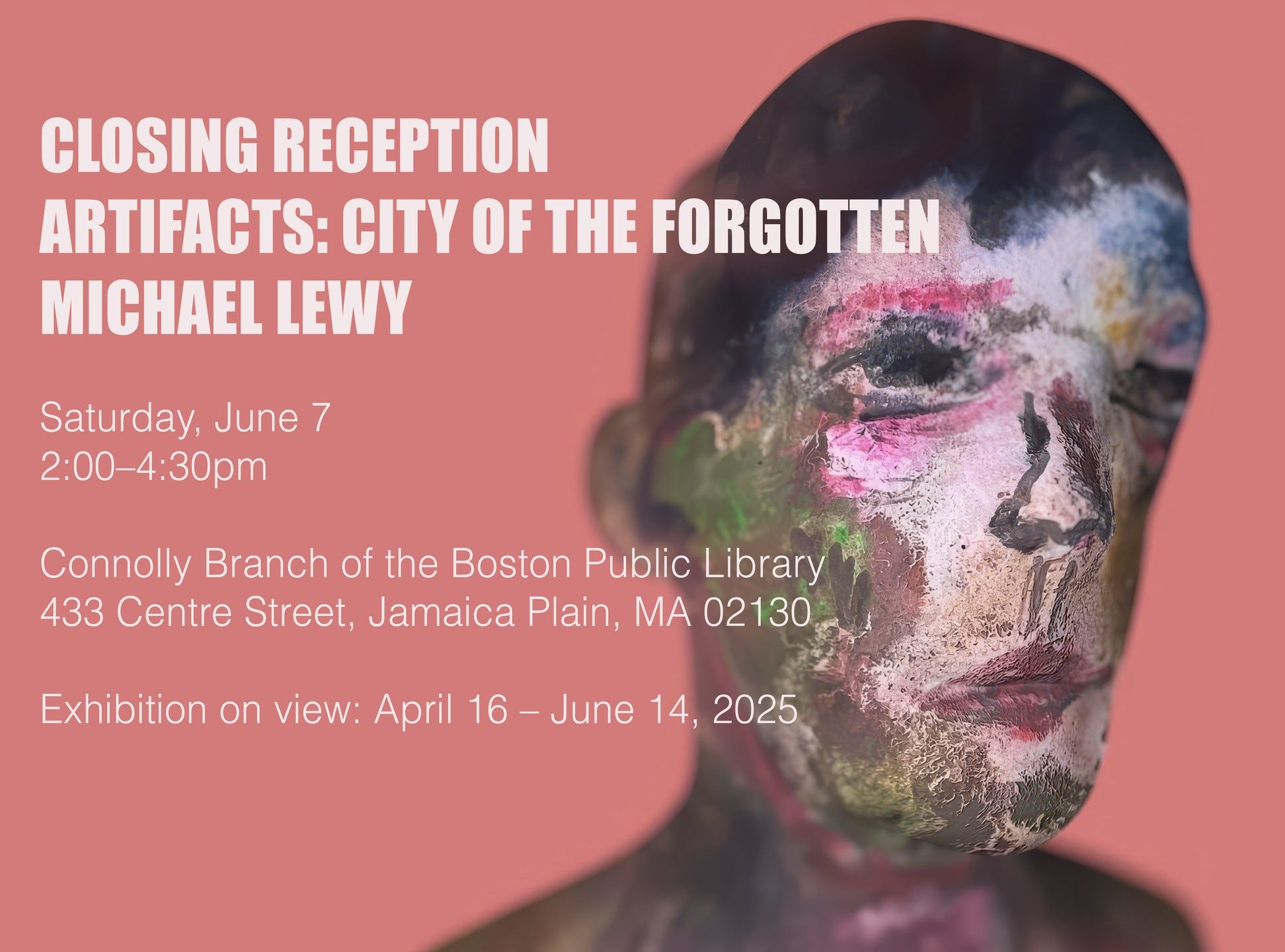 My show at the Connolly Branch Library (Artifacts: City of the Forgotten) runs through June 15, and I am hosting a closing event on Saturday, June 7, from 2:00 to 4:30 p.m. - Connolly Branch Library, 433 Centre Street, Jamaica Plain, MA 02130
