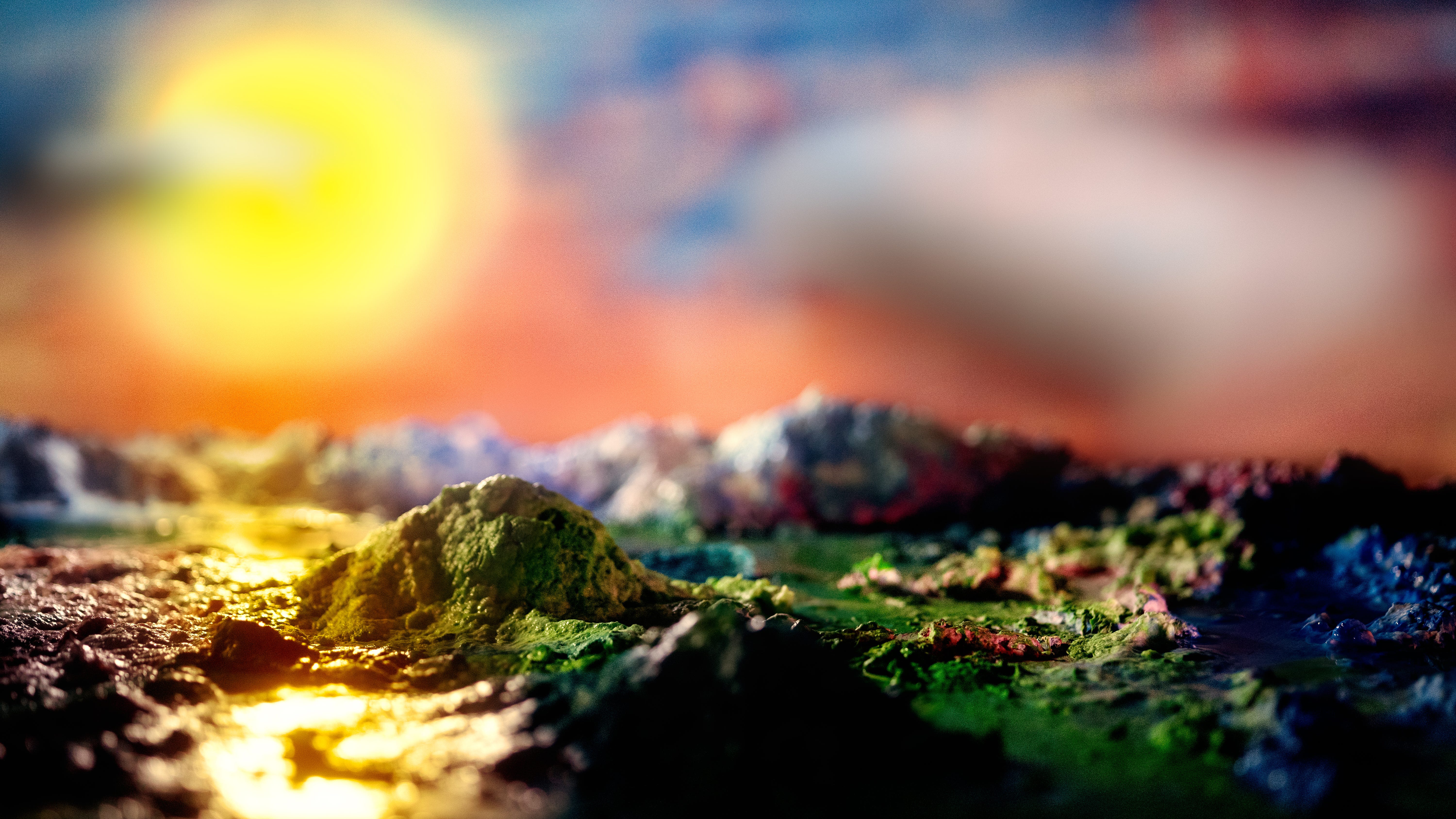 I have been photographing miniatures for years, and this project emerged from a desire to translate the abstraction of landscape painting into photography. Using tiny miniatures allowed me to construct and photograph scenes quickly. Some of the materials I used included plaster, clay, acrylic paint, mirror, and, at times, Photoshop's generative AI to add elements like water.
