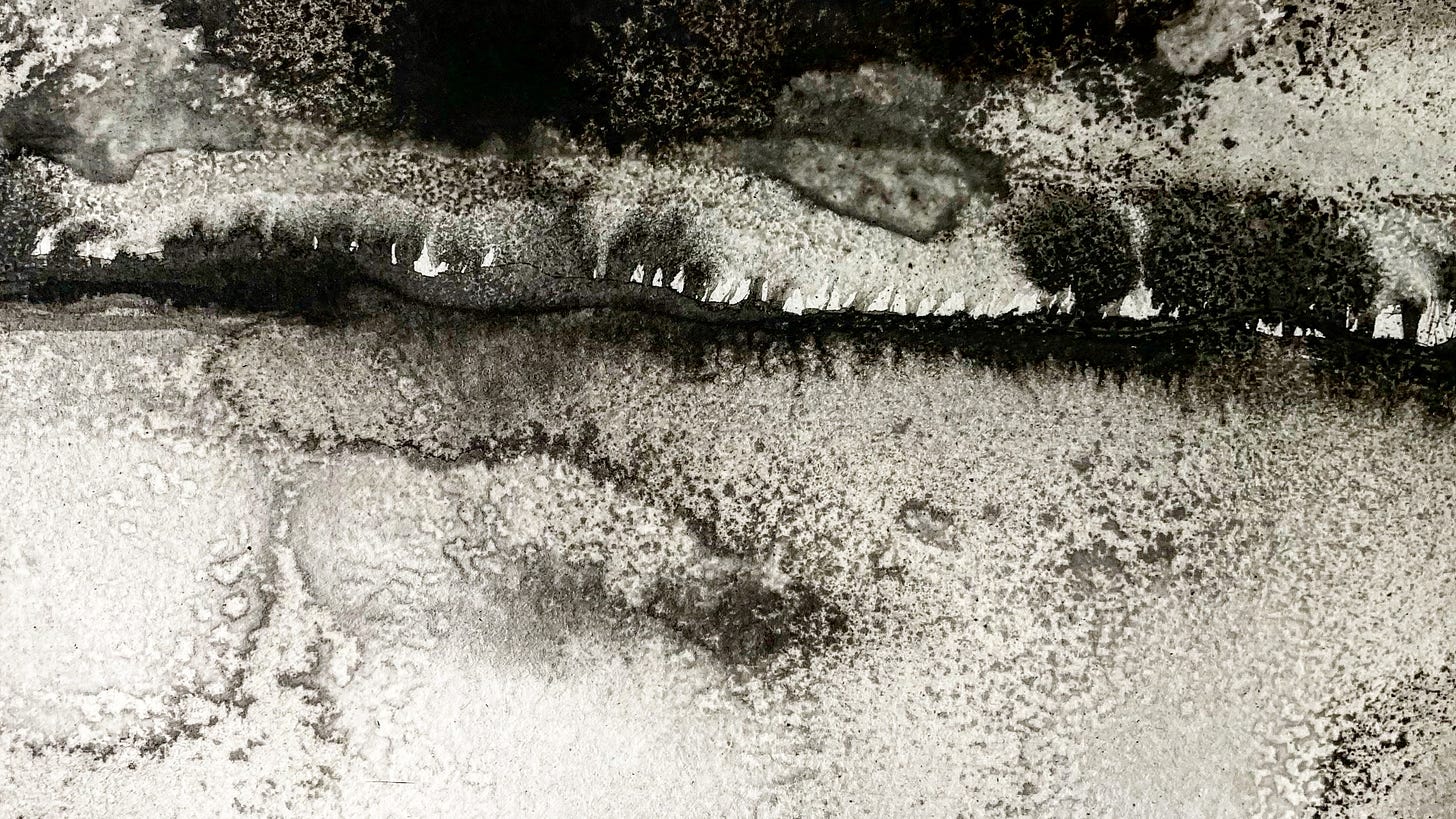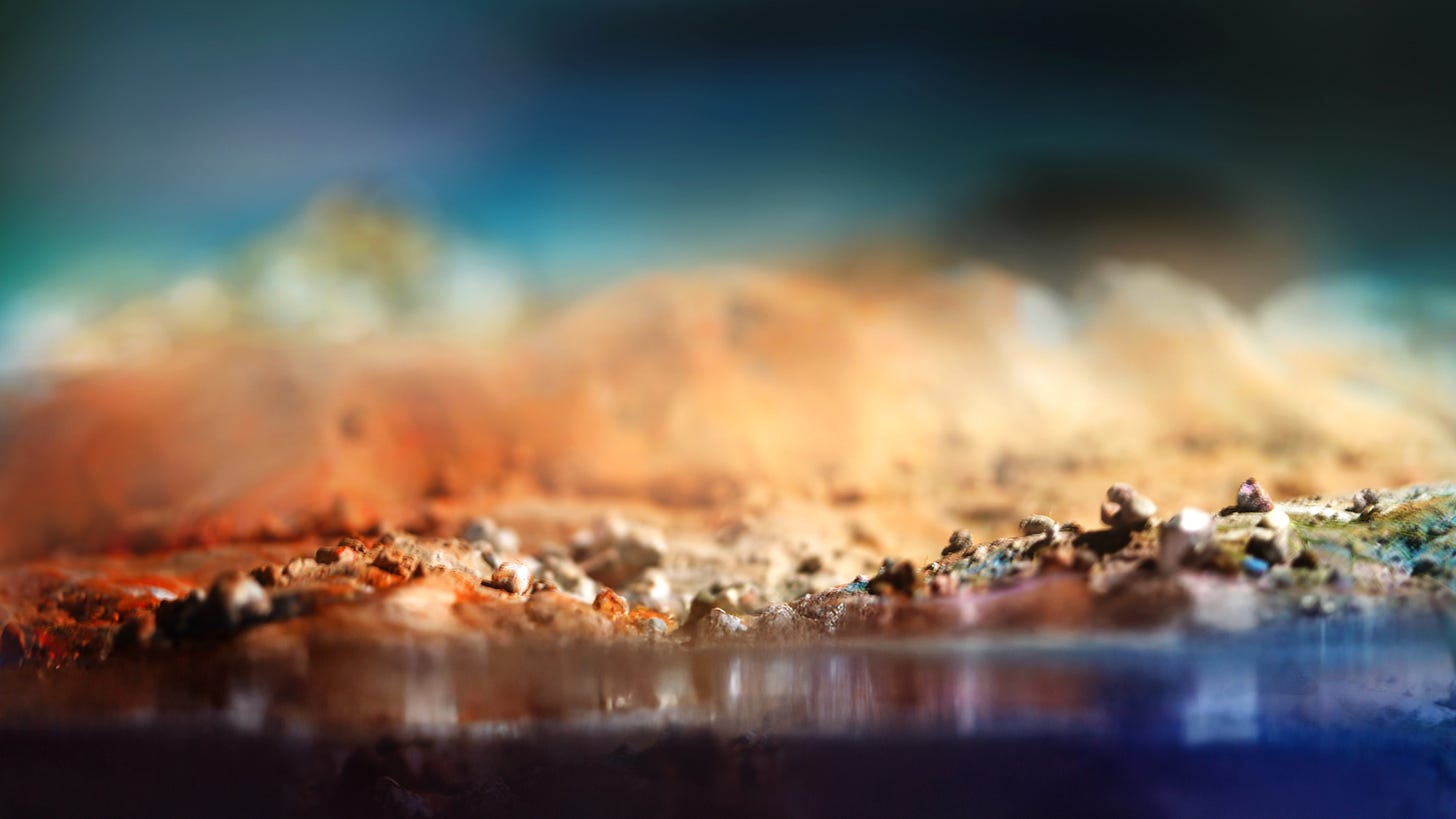I've never considered myself a painter or someone who could draw. But over the past year, I've been teaching myself painting — something I've always been fascinated with. I didn't know exactly where the work was heading, but it inspired the constructed landscapes in The Lone Earth. Here are a few of those.
